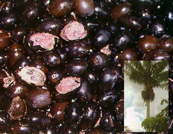y pulpa fina, agrupados en racimos. Semilla dura y cubierta de fibras. Raices