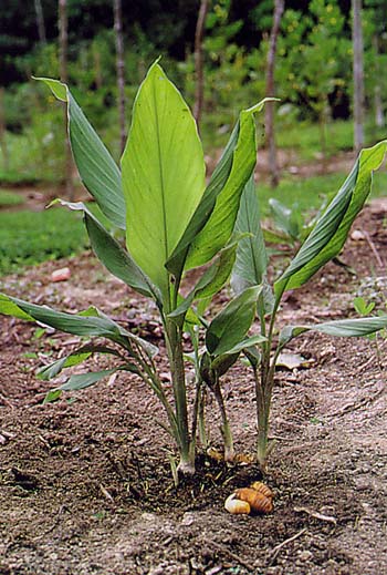 Descripción botánica: Planta her- bácea, erguida, de hasta 1 m de alto Hojas lanceoladas y elípticas de 20 a 90 cm de largo x 5 a 12 cm de ancho, peciolo largo y acanalado de 20 a 30 cm de longitud, color verde claro. de base ancha y envolvente Tallo subterráneo (rizoma) de color anaranjado de donde salen uno o varios rizomas secundarios en forma de dedos largos de 5 a 8 cm. llamados dedos o curcuma larga, Inflorescencia, espiga densa de 10 a 15 cm de largo, Flores pequeñas, ama- rillo pálidas. corola en embudo que tiene 3 lóbulos. Fruto capsular.