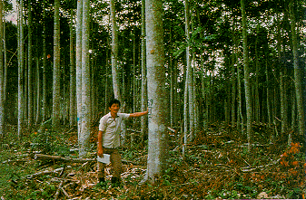 A partir de noviembre de 1989, los búfalos ingresaron repetidas veces en la plantación, volteando árboles. Después de la evaluación de diciembre 1990, se decidió suspender todo mantenimiento, porque la elevada mortandad causada por los animales distorsionaba totalmente el experimento.