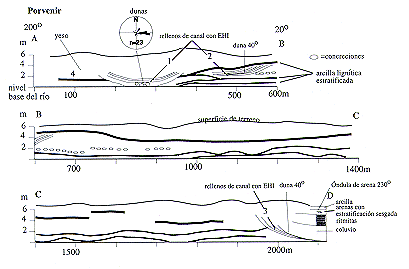 Fecha de adquisición de datos: 23 setiembre de 1996 Direcciones de paleocorriente hacia: SO, NE & SE