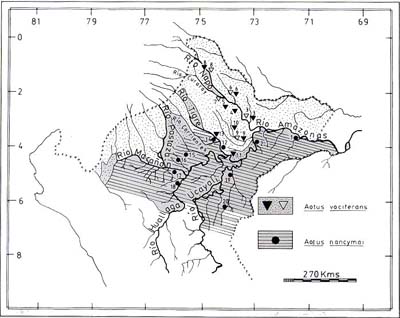 TABLE III. Average Densities of Aotus nancymai and A. vociferans in Two Forest Types: Census by Transect