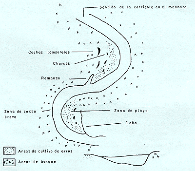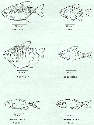 Las áreas de alevinaje de las especies nativas que se cultivan están constituidas por pequeños cuerpos de agua temporales y laterales al canal principal de los ríos de agua blanca (Fig. 6.2), por los remansos de la orilla convexa en charcos recientes influenciados por la resaca y que se encuentran en las playas, en los caños y quebradas que salen al cauce principal.