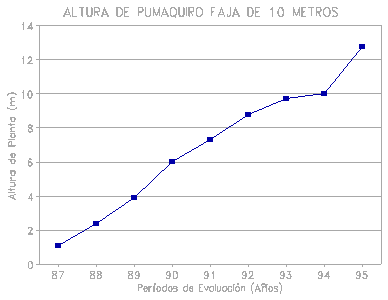 En el sistema de faja de 10 m de ancho, el Pumaquiro en los tres primeros años presenta un lento crecimiento, debido a que se encuentra en un proceso de ambientación a su nuevo medio (suelo), ya que son plantones que fueron producidos en vivero.