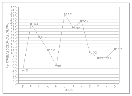 En los meses de verano, a excepción de febrero (invierno) el número de cápsulas cosechadas se incrementa, bajando en los meses de invierno, en que la planta sufre un agotamiento, el cual se observa cada 3 a 4 meses.