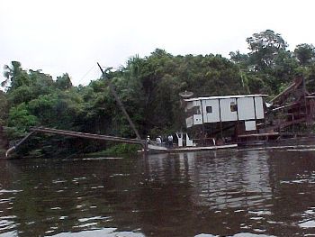 Foto 17. "Rapisheo", jaula flotante construida con materiales de la zona para el trasporte de peces vivos Foto 18. Mononave para el trasporte de pasajeros en el río Amazonas