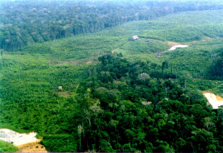 Áreas deforestadas en terrenos colinosos adyacentes a la carretera